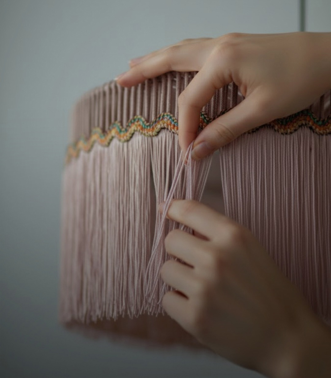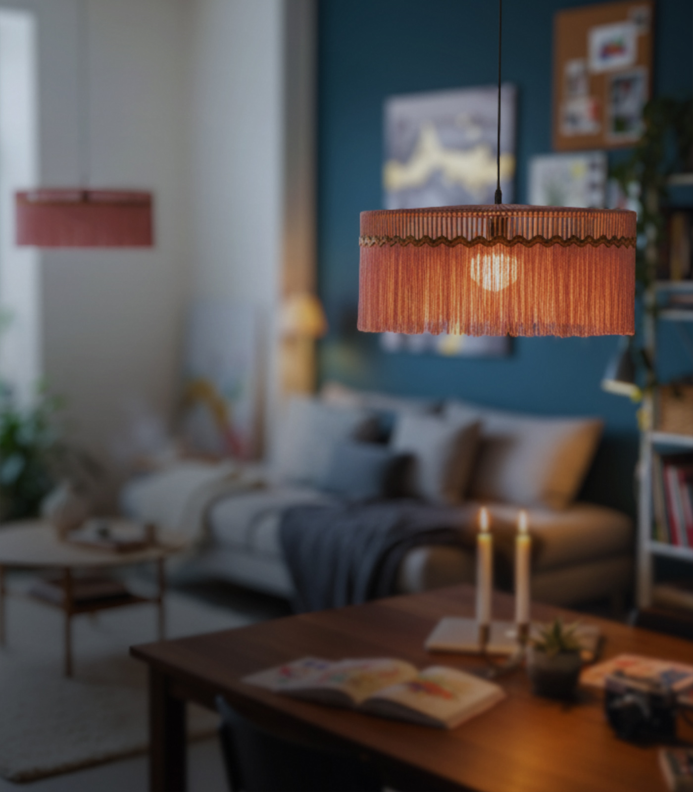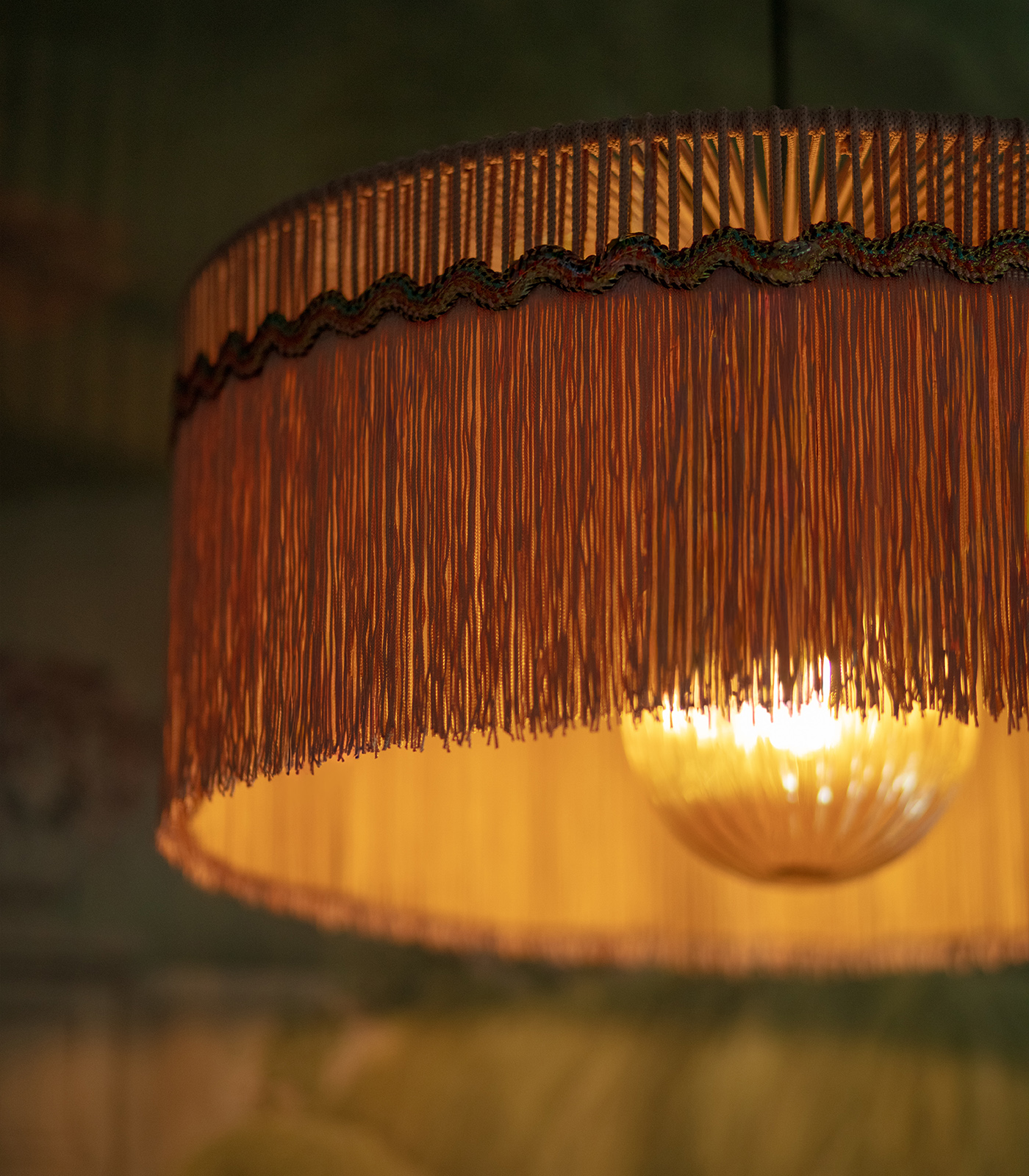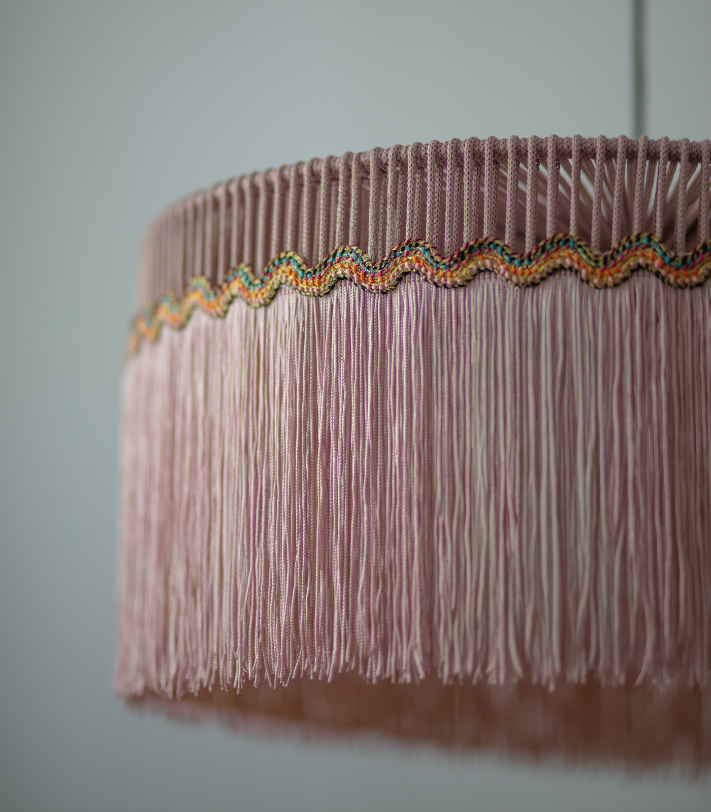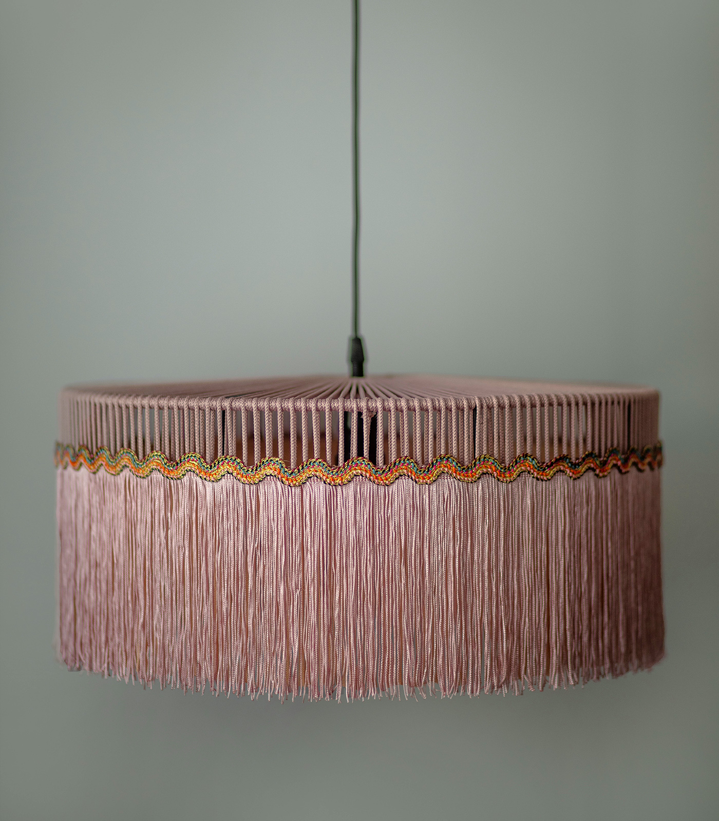 • wymiary lampy: wysokość 75mm, szerokość 450mm + frędzle o długości 15cm